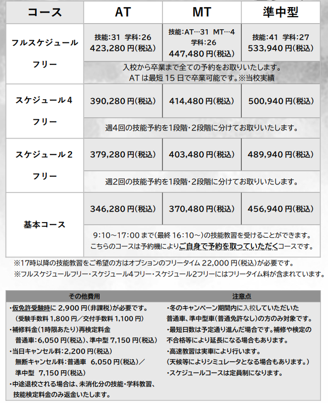 普通自動車免許と準中型自動車免許(普通車免許をお持ちでない方)をご希望の方へ